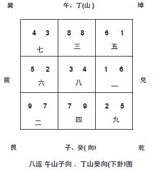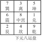 2.查入中宫之山飞星与向飞星数所对应的宫卦,在该宫中找出与建筑同元的山龙,即可知道用何九星来替。