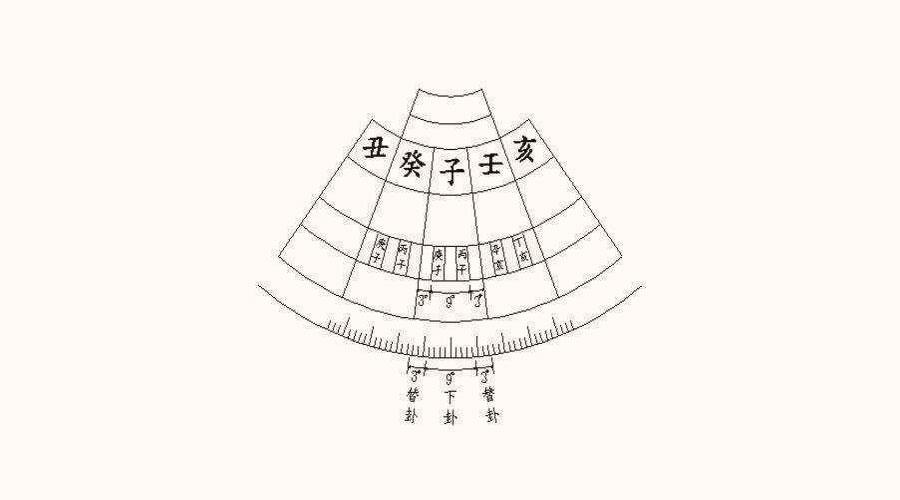 出卦即是指每个卦宫中的山去兼邻宫的山即为出卦,只有人元龙与地元龙兼向时会发生此种情况,天元龙不会产生出卦兼的可能。如在坎宫壬山兼干宫的亥山,必用替;艮宫的丑山兼坎宫的癸山,必用替。