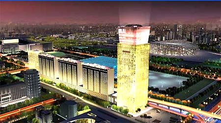 位于亚奥核心区的奥运会重要配套工程——北京摩根中心就是一条东方巨龙的具象,这个建筑群是李祖原先生设计的,以中华民族的图腾“龙”作为建筑外型,此项目东西长近