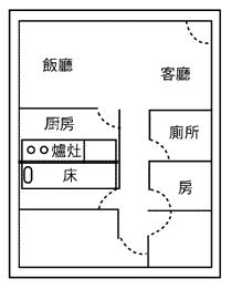 上 圖 所 示 是 廚 房 與 睡 房 相 貼 , 如 安 床 如 上 圖 , 即 便 常 常 睡 覺 亦 曾 沒 精 打 采 , 籽 神 不 振 。
