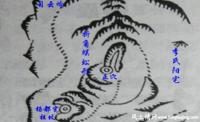江西李氏祖坟的风水宝地,龙穴在江西丰城市湖茫栖笼山。其龙脉发自招云岭,廉贞火星作祖而来,龙行十几里公里,审查龙势中间穿田渡峡,出帐入帐,起伏顿挫左右活动栖闪,皆不能详尽悉说。龙将近结局处顿起高大星峰,蛹跃奔腾,甚是雄伟,龙气大旺,但是天下穴无完美,结穴处脉气直硬如剑脊之势,穴上绷面微开窝点,横放其棺,名曰:衔柴葬。登穴查看局势,促迫不入俗眼,仔细检点大局大势,山水聚会,而且结穴之后,白虎星辰顿跌奔走,而结杨都宪祖坟,枝脚虽去,却有回顾左畔进穴,左边稍空旷,外山青龙亦远转作正案,朝山三台席冒重叠,又有鹤仙岗、白湖岭、帐幕山,如贵人天马锦帐,以作远朝局势完整,山水盘恒。