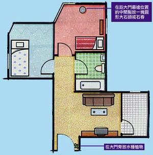 首 先 要 知 道 大 門 的 方 位 。 因 為 在 今 年 裏 , 大 門 向 東 南 及 西 北 是 財 運 最 差 的 , 要 是 你 住 地 方 除 了 是 漏 財 或 破 財 格 局 之 外 , 尚 加 上 大 門 開 在 這 兩 個 方 位 , 就 真 的 是 雪 上 加 霜 了 。 要 找 出 大 門 方 位 , 須 在 入 屋 之 後 , 拿 著 指 南 針 輚 身 對 望 大 門 , 若 大 門 在 東 南 及 西 北 位 置 , 則 放 一 盆 水 種 植 物 於 大 門 旁 , 並 在 距 大 門 最 遠 位 置 的 中 央 地 方 放 一 塊 圓 形 大 石 頭 或 石 春 便 可 以 ( 見 圖 例 ) 。 即 使 大 門 不 開 在 這 兩 方 位 , 亦 可 照 擺 這 招 財 風 水 局 , 同 樣 有 催 財 作 用 。