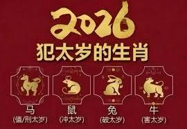 2026年流年丙午,生肖属马,凡是出生年的生肖属鼠的人“冲太岁”;属马的人“值太岁”兼“刑太岁”;属牛的人“害太岁”;属兔的人“破太岁”。