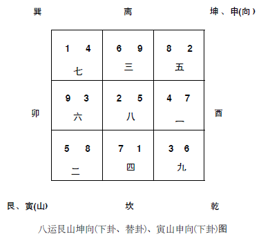八运坤山艮向下卦、替卦,申山寅向下卦。