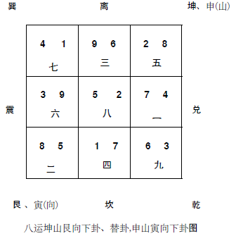 八运坤山艮向下卦、替卦,申山寅向下卦。