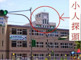 住宅前方的建築物其後方又有一座稍高之建築物,樓頂比前座建築物凸出了一截,好像有人伸出頭來偷窺的樣子,謂之探頭煞。