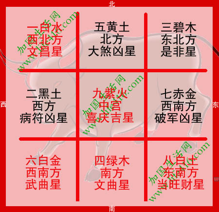此外,2009年在家中的正北(五黃位)、正西(二黑位)、東北(太歲位)、正東(流年三煞位)這四個方位還要注意: