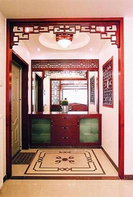 在大门口玄关处设置鞋柜,一入门就把鞋脱下放在鞋柜上,关上柜门后,可以谢绝秽气涌向屋内。而且“鞋”与“谐”同音,有和谐、好合之意,并且鞋必是成双成对,家庭最需要和谐好合,因此入门见鞋是吉利的。