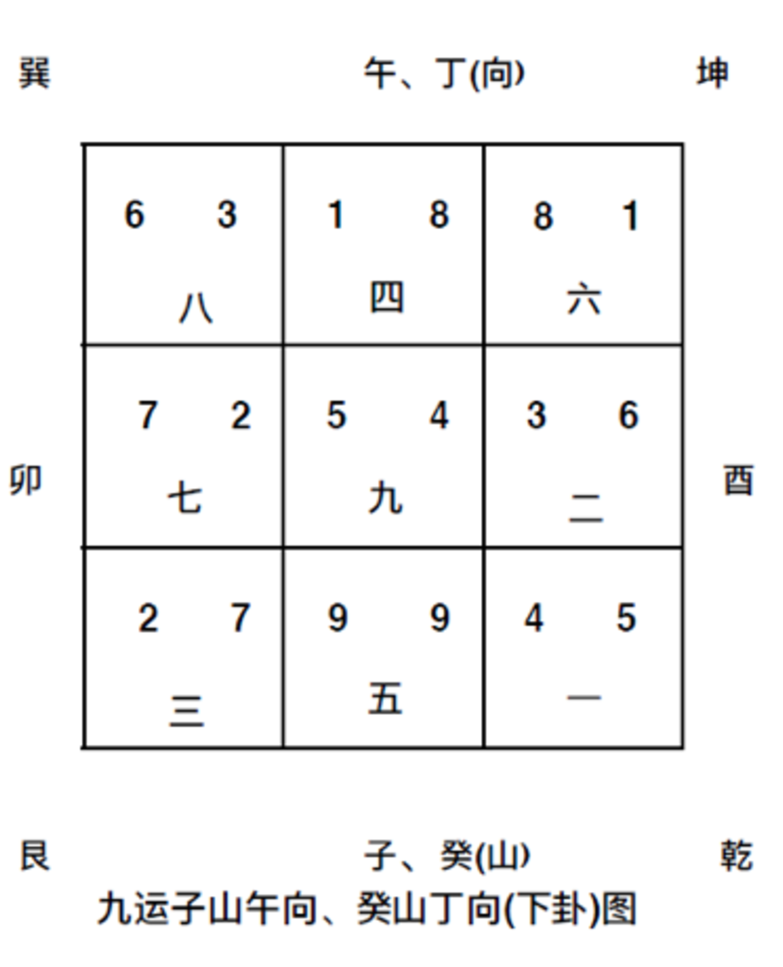 九運子⼭午向、癸山丁向(下卦)星盤完全相同。