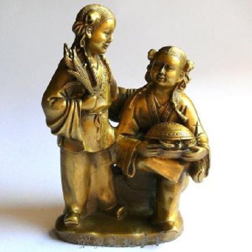 和合二仙是民間傳說中的愛神,主婚姻和合。在中國傳統的婚禮喜慶儀式上,常常掛有和合二仙的畫軸。傳統畫面中我們能看到兩個活潑可愛,長髮披肩的孩童,一個手持荷花,另一個手捧園盆,盆中飛出五隻蝙蝠。他們相親相愛,笑容滿面,十分惹人喜愛。人們借此來祝賀新婚夫婦白頭偕老,永結同心。玉雕刻的和合二仙,可作佩戴之用,能讓夫妻雙方恩恩愛愛、百年好合。