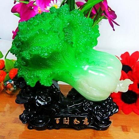 玉白菜的第一個寓意,取自白菜的諧音為遇百財,又叫“橫財(菜)就手” ,寓意一切意外之財來得容易。第二個寓意,取自白菜的顏色和外形,寓意堅貞純潔,清清白白。是送禮或擺設、收藏的佳品。玉白菜常用做擺件,也有不少小雕件。佩帶玉白菜,財源滾滾來,廳堂擺設玉白菜,頓生豪華氣派。