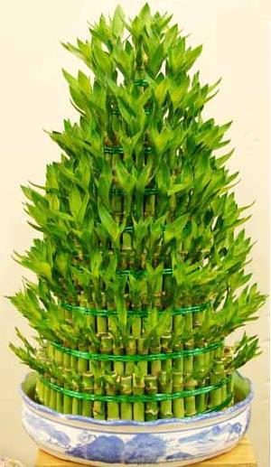 富貴竹有富貴吉祥的美名,象徵開運、安然。三五七層成寶塔狀的叫富貴塔,也稱開運竹;栽培和加工成螺旋型、心型、8字等型的叫轉運竹,人們寄望能轉來好運;培植時人工編織成籠狀,取富貴纏綿,豬籠入水,財源廣進之意;用多枝紮成一束或散插在花瓶中的直枝,造型生動,待各枝頂芽開葉後更顯得生機勃勃,大有節節高升之勢。富貴竹無論是在家裏,還是在公司擺放都吉利。在文昌位上放置一盆富貴竹,有助考試運和事業運。在財位上放置富貴竹,可收招財進寶之效。