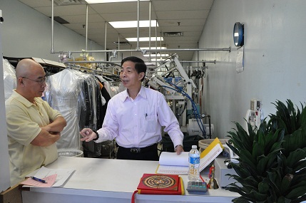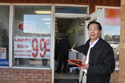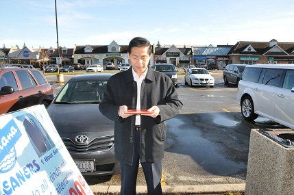 前日上午10时左右,刘燮钧先生来到吕先生位于STEELES AVE.和YONGE ST.附近的一个PLAZA里的洗衣店中,为吕先生的店铺勘察风水。刘先生首先用罗盘确定了吕先生店铺的方位为坐庚向甲,即坐西向东,为西四宅铺。随后,刘先生开始观测店铺外部的风水。