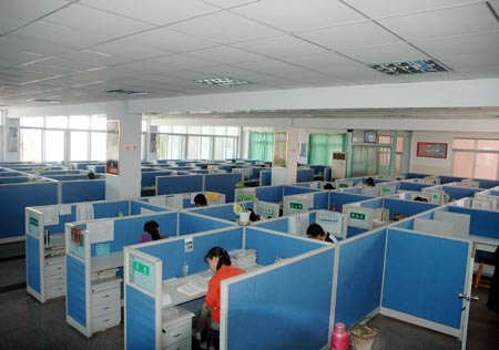 9、忌面對面而坐。不宜無阻隔將辦公桌兩兩相對擺放,而辦公者面對面而坐。這種格局易使個人的隱私被對方窺視,而導之相互提防猜忌,最終難於和睦相處。即使能關係和諧,也易因說說笑笑,談天說地而影響工作。因此,最好將兩兩相對擺放的辦公桌中間用板隔開。